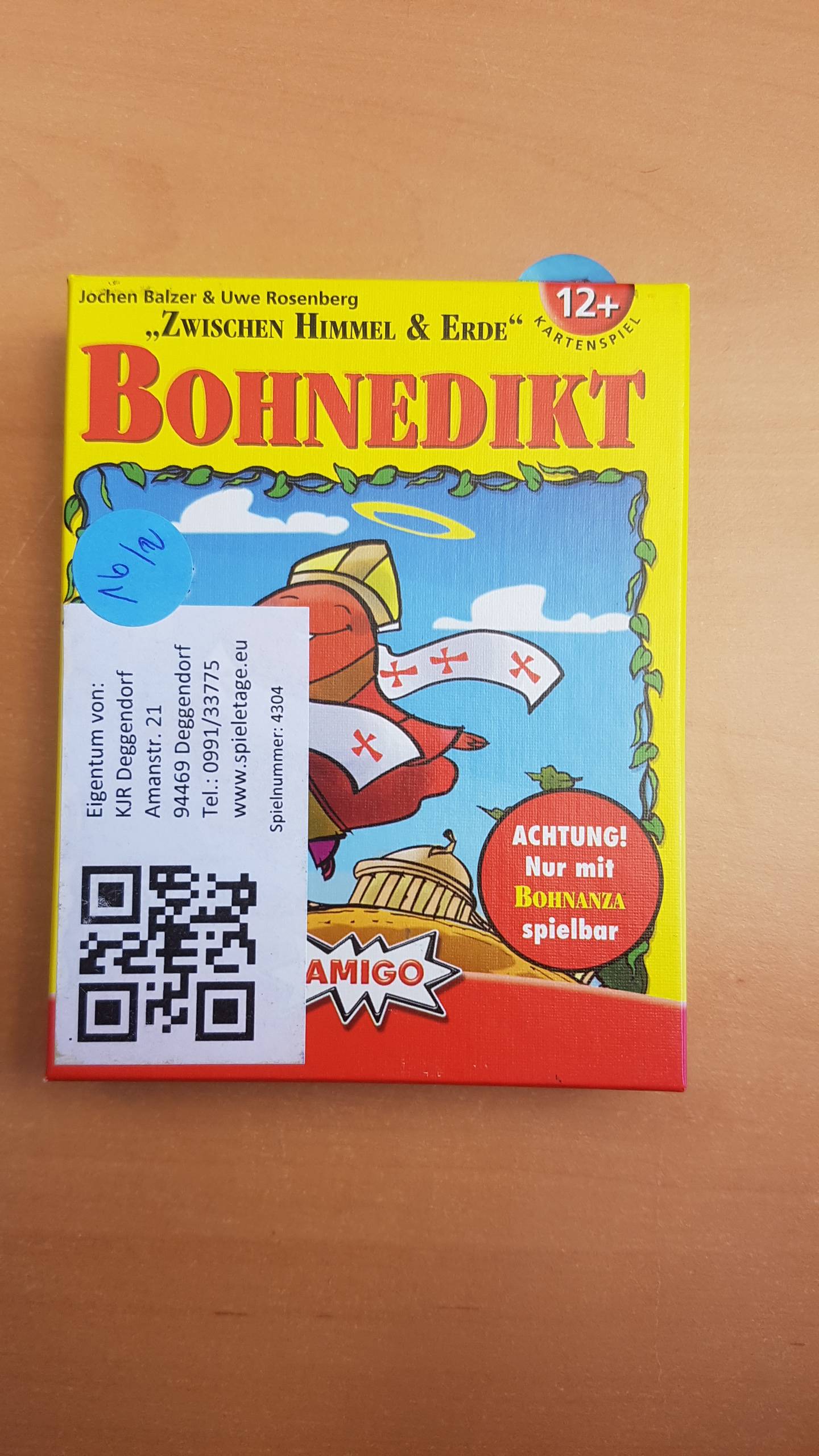 Mit Bohnedikt bringt AMIGO eine Neufassung der Bohnanza-Erweiterung aus dem Jahre 2009 heraus. Die „himmlischen Gebote“ der Bohnedikte bieten neue Variationen in der Handelsphase. Bohnedikt ist nur mit dem Grundspiel spielbar.