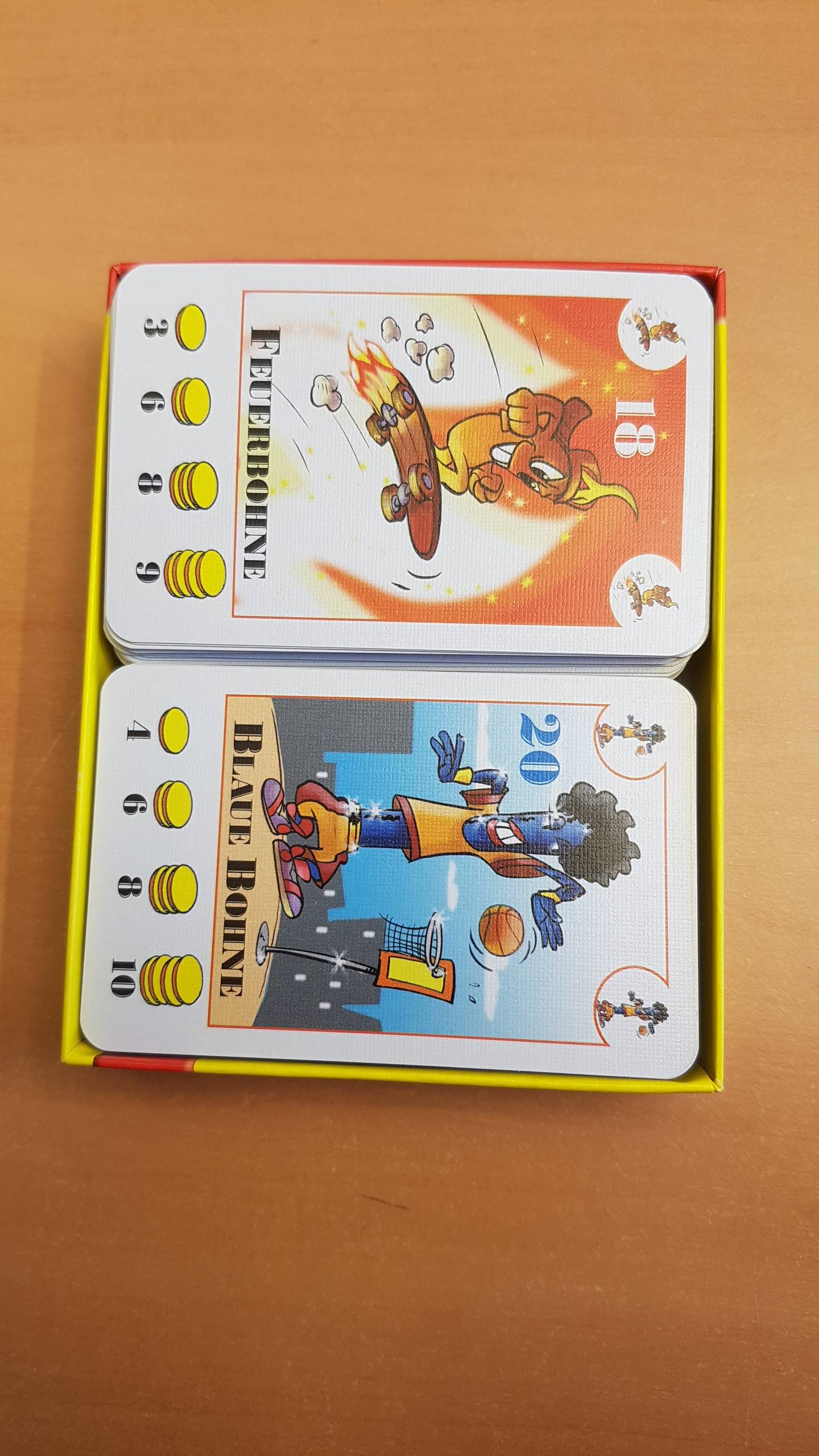 Bohnanza Fun & EasyDas neue Bohnanza Generationsspiel: Nach mehr als 14 Jahren und einer der größten Kartenspiel-Fangemeinden, gibt es den Klassiker jetzt als Fun & Easy Edition.Durch vereinfachte Einstiegsmöglichkeiten und verkürzte Spielphasen, ist auch die jüngere Zielgruppe für das Bohnengeschäft zu begeistern. Auf diese Weise bringt das Spiel alte und neue Bohnanza-Fans zusammen.Besonders reizvoll ist, dass auch die eine oder andere Bohne für Widererkennung sorgt: ob die Rock-Bohne, der Skateboardfahrer oder der Hamburger-Fan - hier ist für jeden die passende Bohne dabei. Die Spieler versuchen wie auch bei Bohnanza die verschiedenen Bohnensorten gewinnbringend auf ihren drei Feldern anzubauen.Wer am Ende die dicksten Bohnen abstaubt, gewinnt.