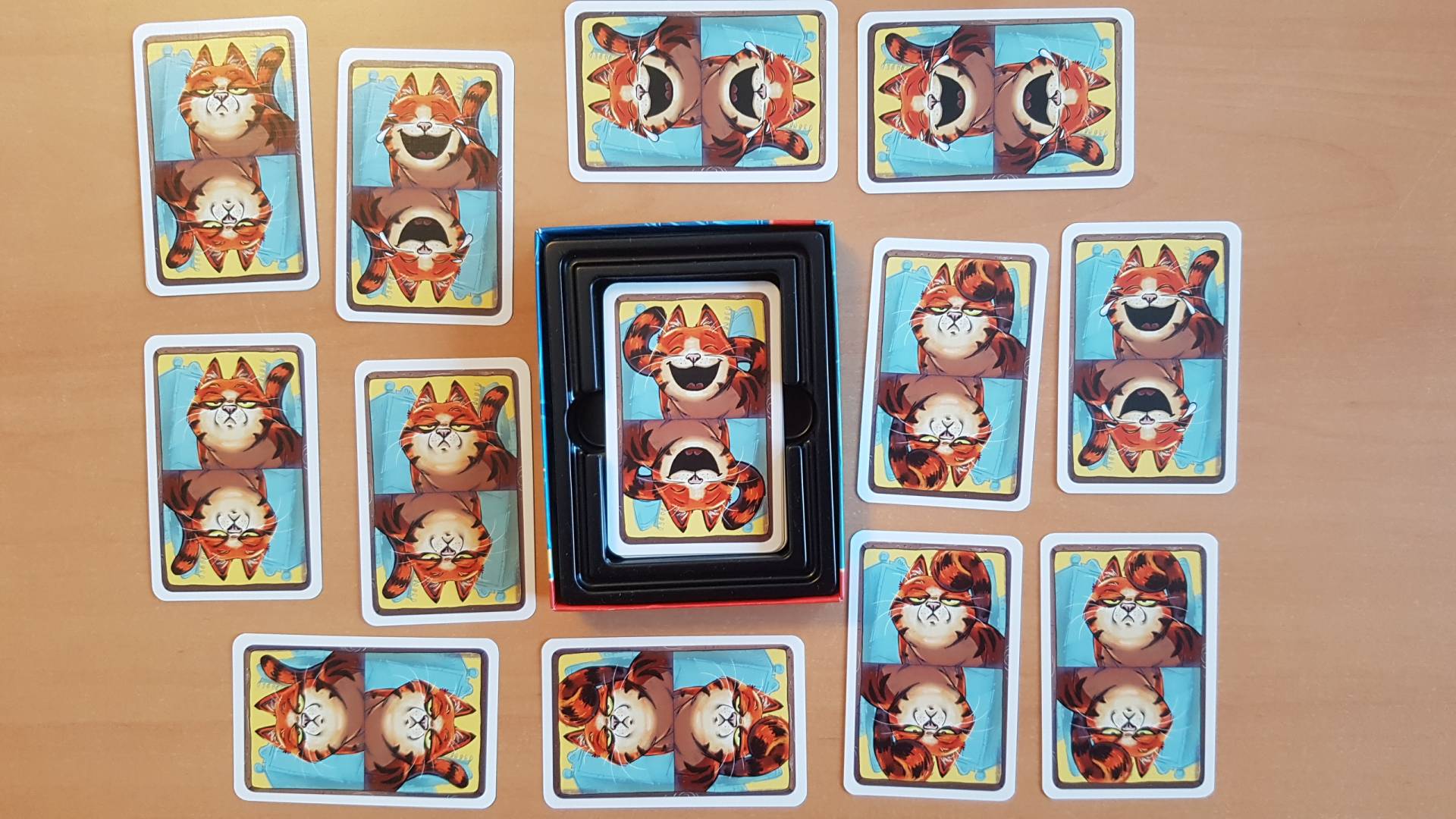 Als Katzenfreund weißt du – Katzen können so süüüüüüß gucken. „The Cat“ kann das auch, aber sie hat da so ihre Launen ... Du hast mehrere Kartenstapel vor dir liegen. Auf jeder Karte ist „The Cat“ mit einer bestimmten Laune abgebildet. Der erste Spieler, der es schafft, in jedem seiner Stapel vier genau gleiche Karten zu sammeln, gewinnt – und kann danach mit seiner Katze kuscheln.