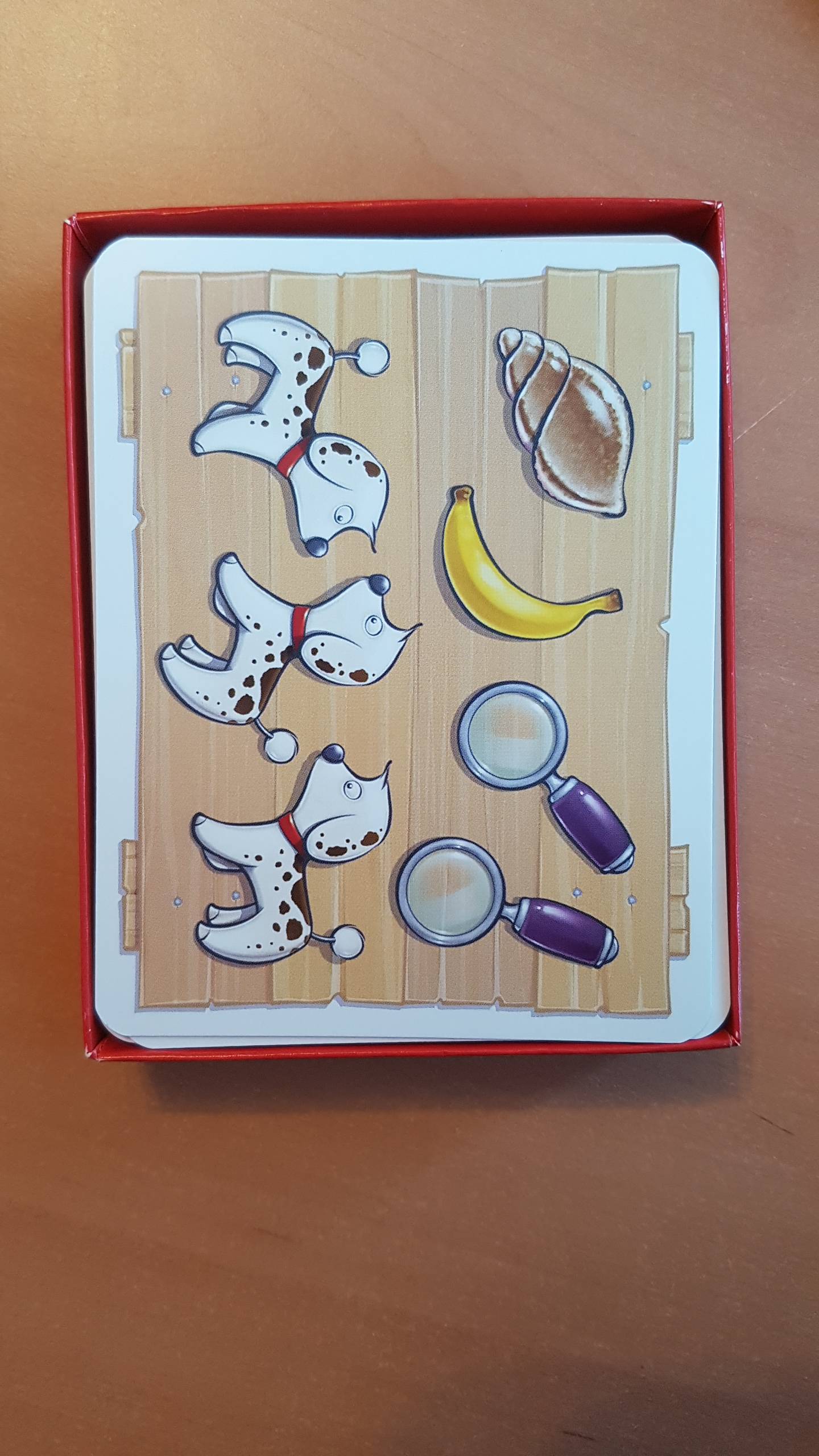 Willi Wombat hat jede Menge Dinge gesammelt und in seiner Kiste aufbewahrt. Ihr könnt Bumerangs, Bälle und Muscheln sehen, aber auch Tiere wie Enten, Frösche oder Hunde. Im Spiel sind Tafeln mit vier verschiedenen Gegenständen. Sie sind unterschiedlich häufig abgebildet. Wer erkennt als Erster, wie oft ein Gegenstand auf mindestens zwei Tafeln abgebildet ist? Alle Gegenstände, die gleich sind, müssen zusammengezählt werden. Der Erste, der die richtige Zahl weiß, erhält eine Tafel. Der Spieler mit den meisten Tafeln gewinnt.