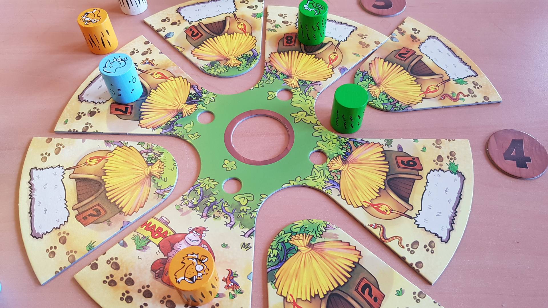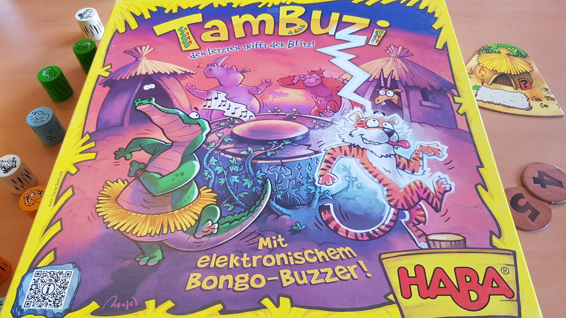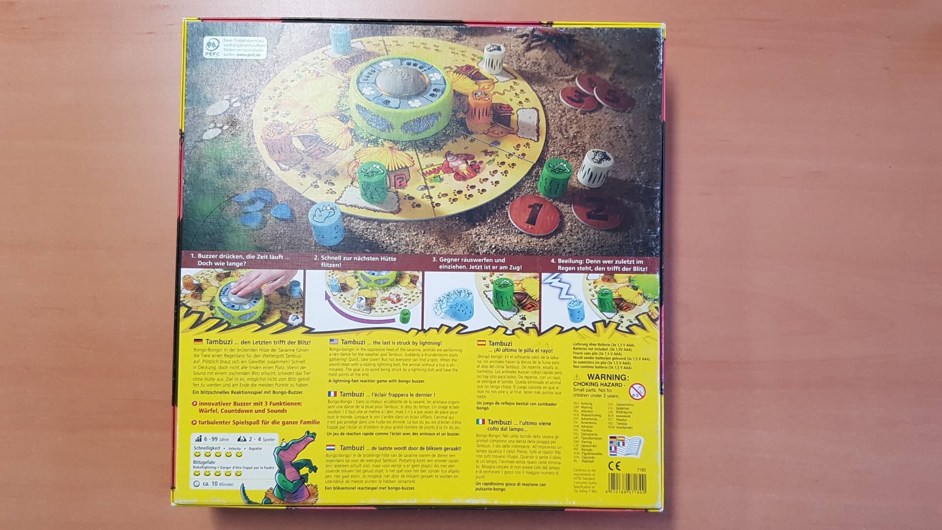 Bongo-Bongo! In der brütenden Hitzeder Savanneführen die Tiere einen Regentanz für den Wettergott Tambuzi auf. Plötzlich braut sich ein Gewitter zusammen! Schnell in Deckung, doch nicht alle finden einen Platz. Wenn der Sound mit einem zischenden Blitz erlischt, scheidet das Tier ohne Hütte aus. Ziel ist es, möglichst nicht vom Blitz getroffen zu werden und am Ende die meisten Punkte zu haben.