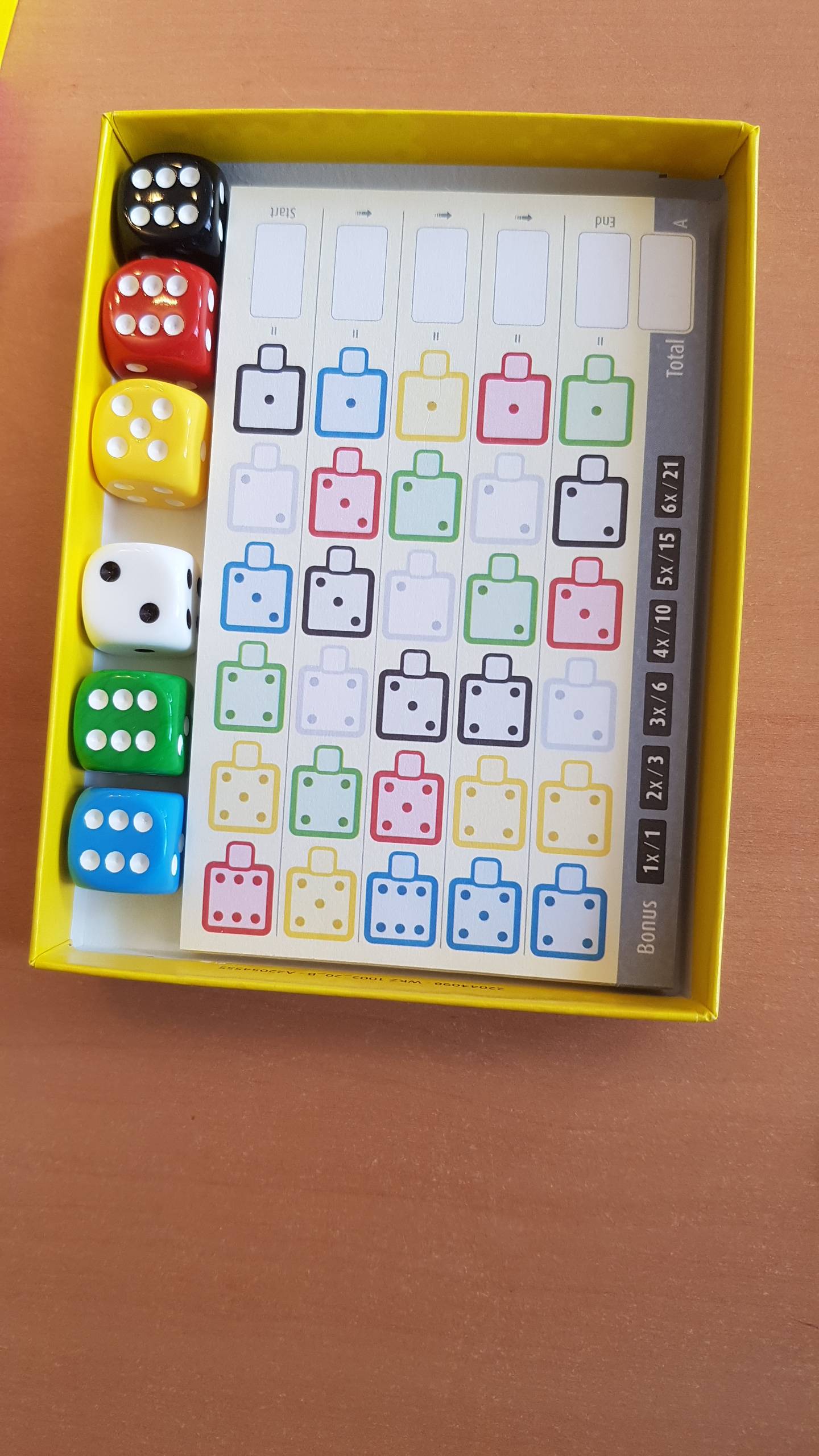 Fünf Reihen. Von oben nach unten. Entweder spielt man auf Tempo und trägt kleine Werte ein. Oder man setzt auf Treffer, denn die bringen fette Bonuspunkte, maximal 21. Einfache Regeln. Keine Wartezeiten. Dafür Erfolgserlebnisse und Freudensprünge. Und zum Schluss ist eines klar – am besten gleich noch eine Partie hinterher.