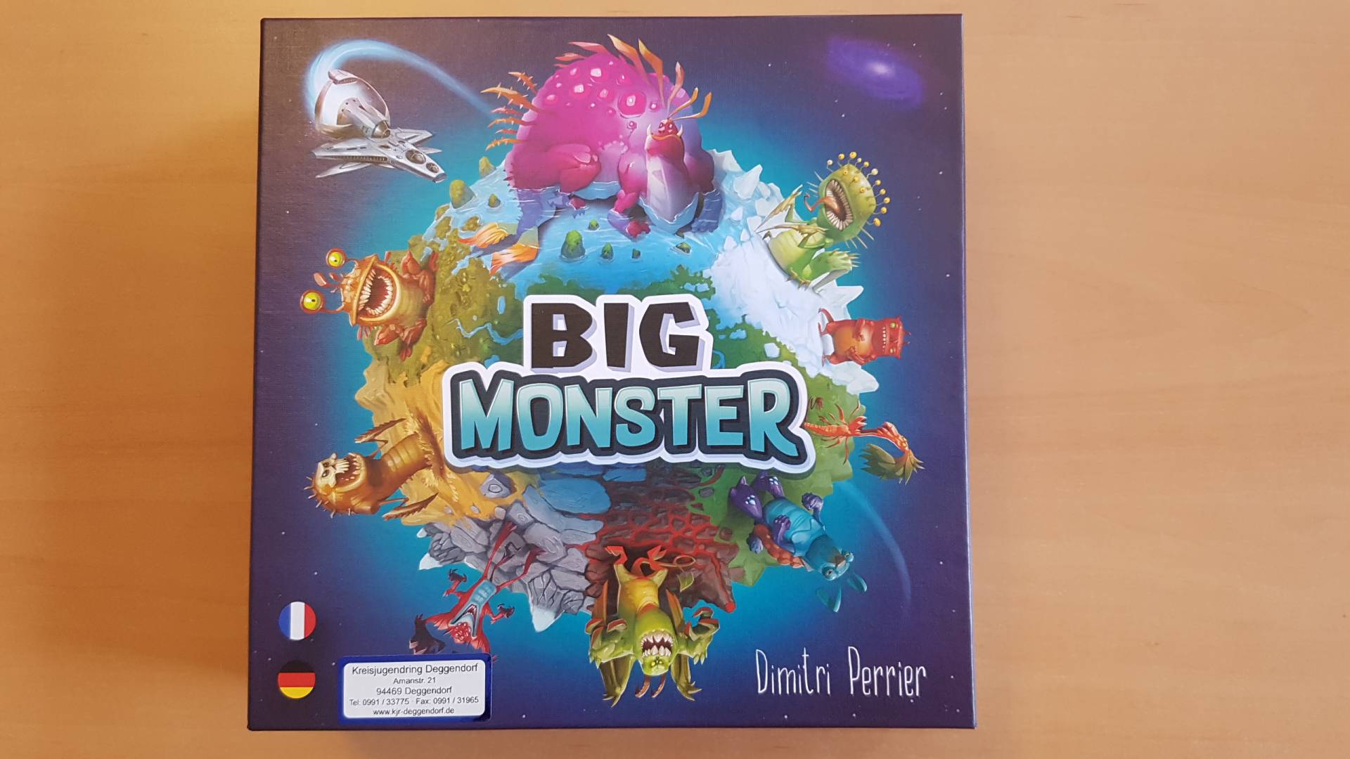 Big Monster ist ein Plättchen-Legespiel mit innovativer Drafting Mechanik. Zu Beginn jeder Runde erhält jeder Spieler 10 Monster Plättchen von denen er eines auswählt. Die übrigen werden weitergegeben. Bei der Teammodus-Variante mit 2, 4 oder 6 Spielern lohnt es sich beim Weitergeben der Plättchen schnell zu sein. So kann man einem Teammitglied die richtigen Karten für die nächste Runde zuschanzen oder bei einem Mitglied des gegnerischen Teams genau das Gegenteil tun.