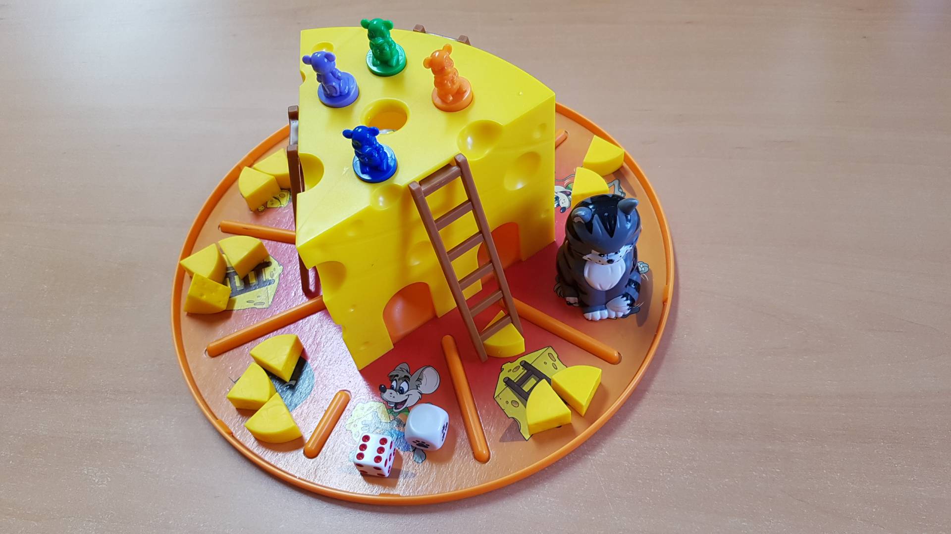 Leckerer Käse! Wer will davon nicht die meisten Stücke sammeln? Doch Vorsicht, Kater Max schleicht um die Ecken herum. Wer nicht aufpasst, ist seine Beute schnell wieder los. Welche Maus lässt sich nicht erschrecken und gewinnt diese Käse-Jagd?
