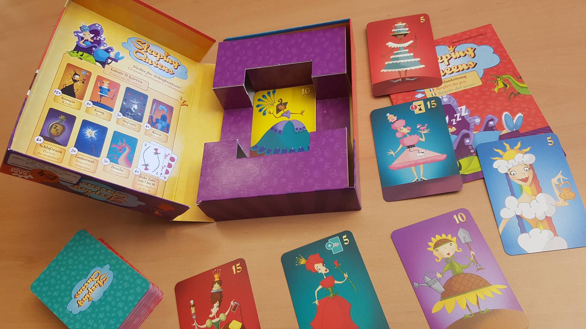 Aufgewacht! 12 verzauberte Königinnen befinden sich tief im Schlummerland und träumen von mutigen Königen, die sie wach küssen. Doch einmal aufgeweckt, sind sie noch lange nicht sicher. Beschütze deine Königin mit einem wachsamen Drachen oder flinkem Zauberstab und bekämpfe deine Gegner mit einem eisernen Ritter oder tückischem Schlummertrunk. Mit Strategie und einem Hauch Glück schreibst du das Happy End und der Sieg ist dein. Doch Vorsicht: Mit dem Hofnarr ist nicht immer zu spaßen, denn sehr schnell hat er die Geschichte neu erzählt. Sleeping Queens ist ein märchenhaftes Abenteuer mit fabelhaften Figuren, für große und kleine Könige.